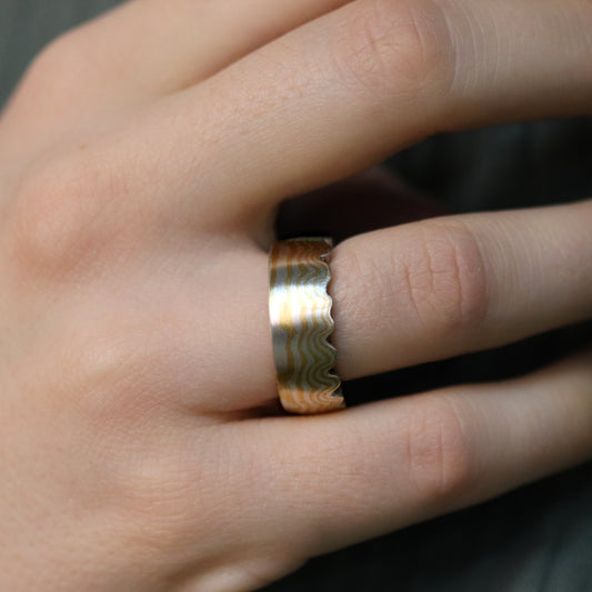 Mokume Gane Ring mit Wellen und Augen, geätzt