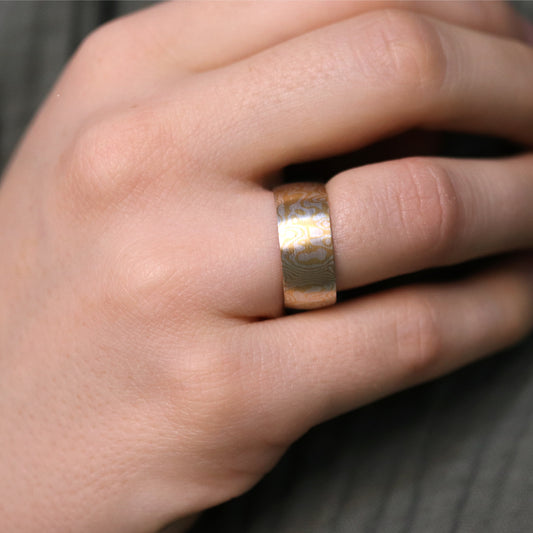 Mokume Gane Ring Augen und Linien mit Rotgold