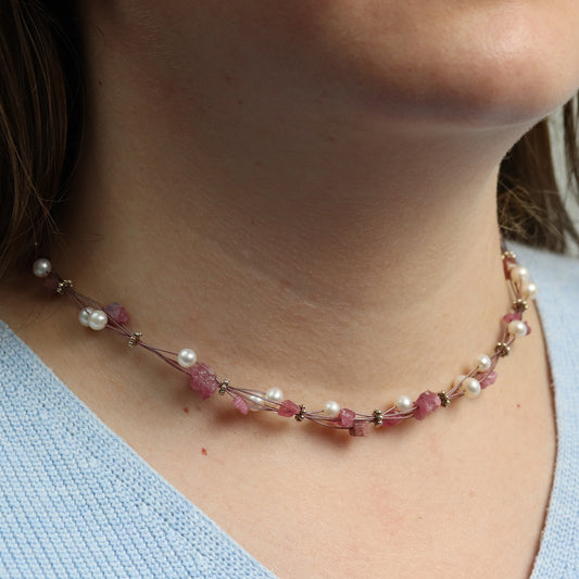 Perlencollier mit Turmalinkristallen