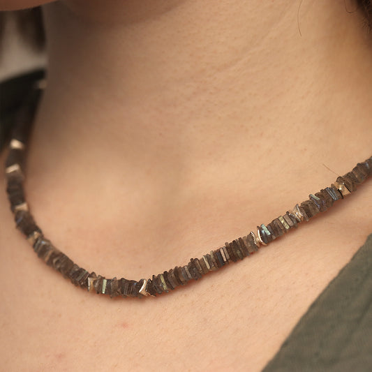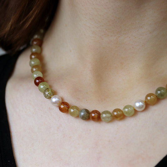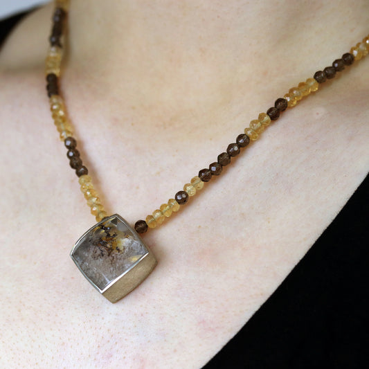 Citrin-Rauchquarz Kette mit Rutilquarz