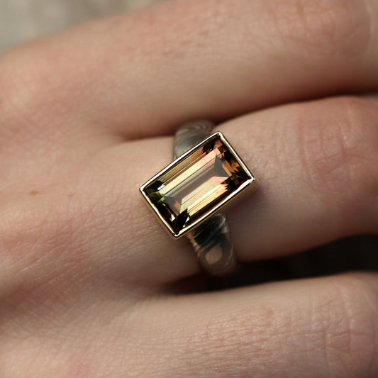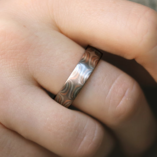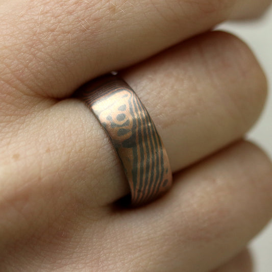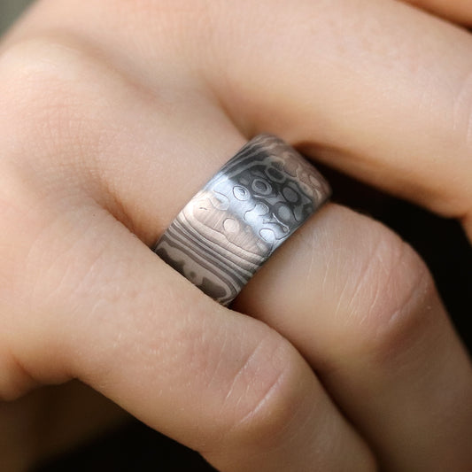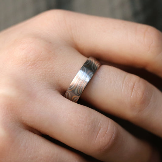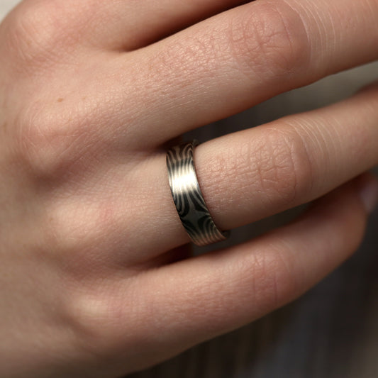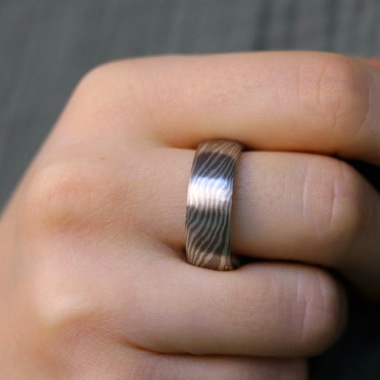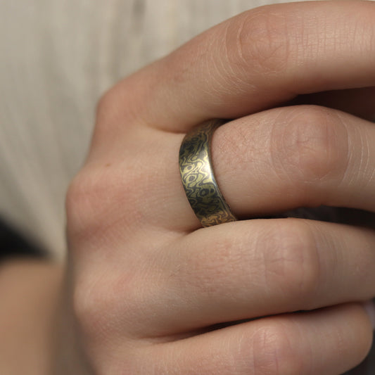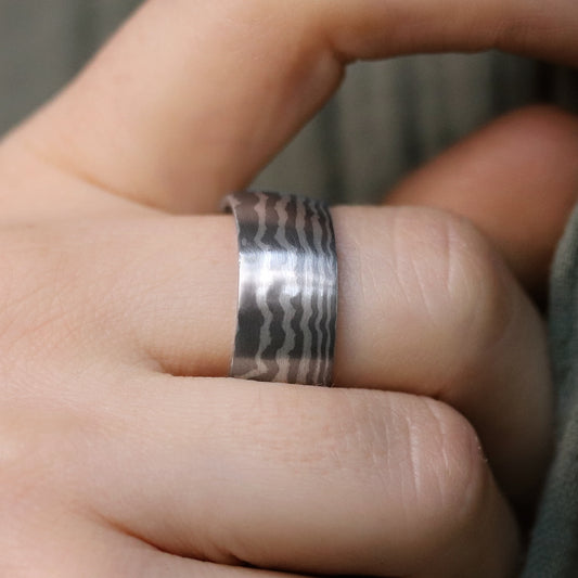 Mokume Gane Ring mit Wellen und Augen, geätzt
