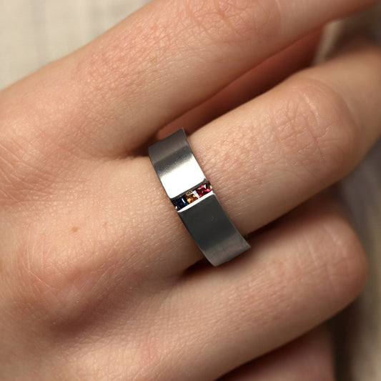 Breiter Palladiumring mit bunten Steinen
