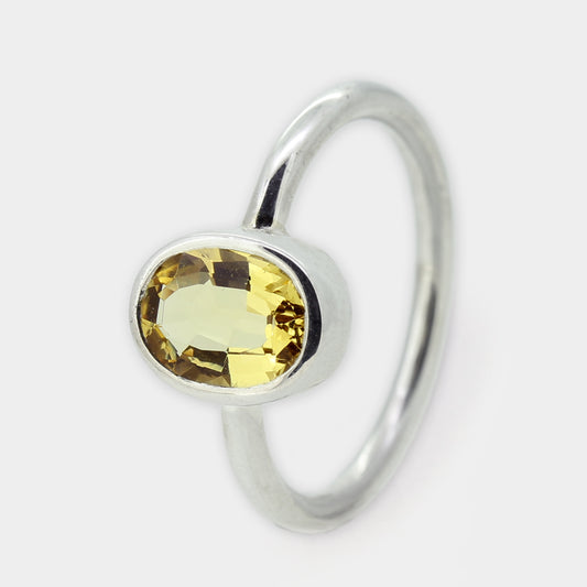 Goldring mit Citrin in Silberfassung
