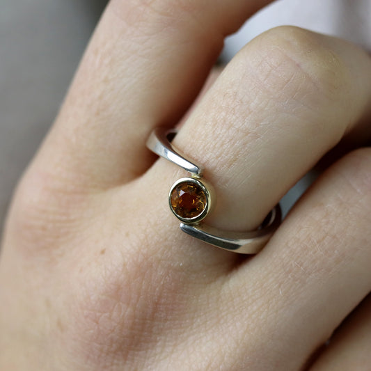 Silberring mit Citrin in Goldfassung