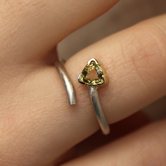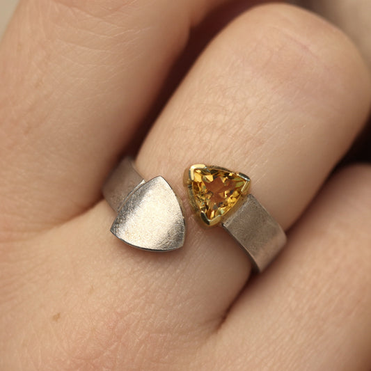 Silberring mit Triangel Citrin in Goldfassung