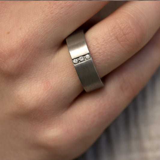 Breiter Silberring mit Brillanten
