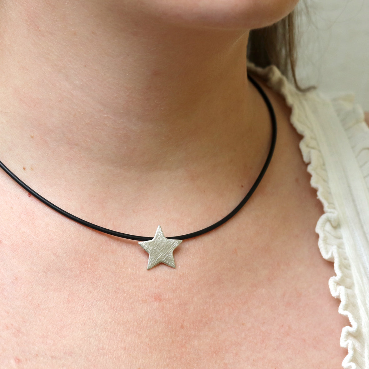 Ein funkelnder Sern in Silber. Dieser schlichte Anhänger kann zu jedem Anlass getragen werden- egal ob an einer langen Kette oder einem kurzen Reifen - er passt immer. Der Reif ist nicht im Preis enthalten.