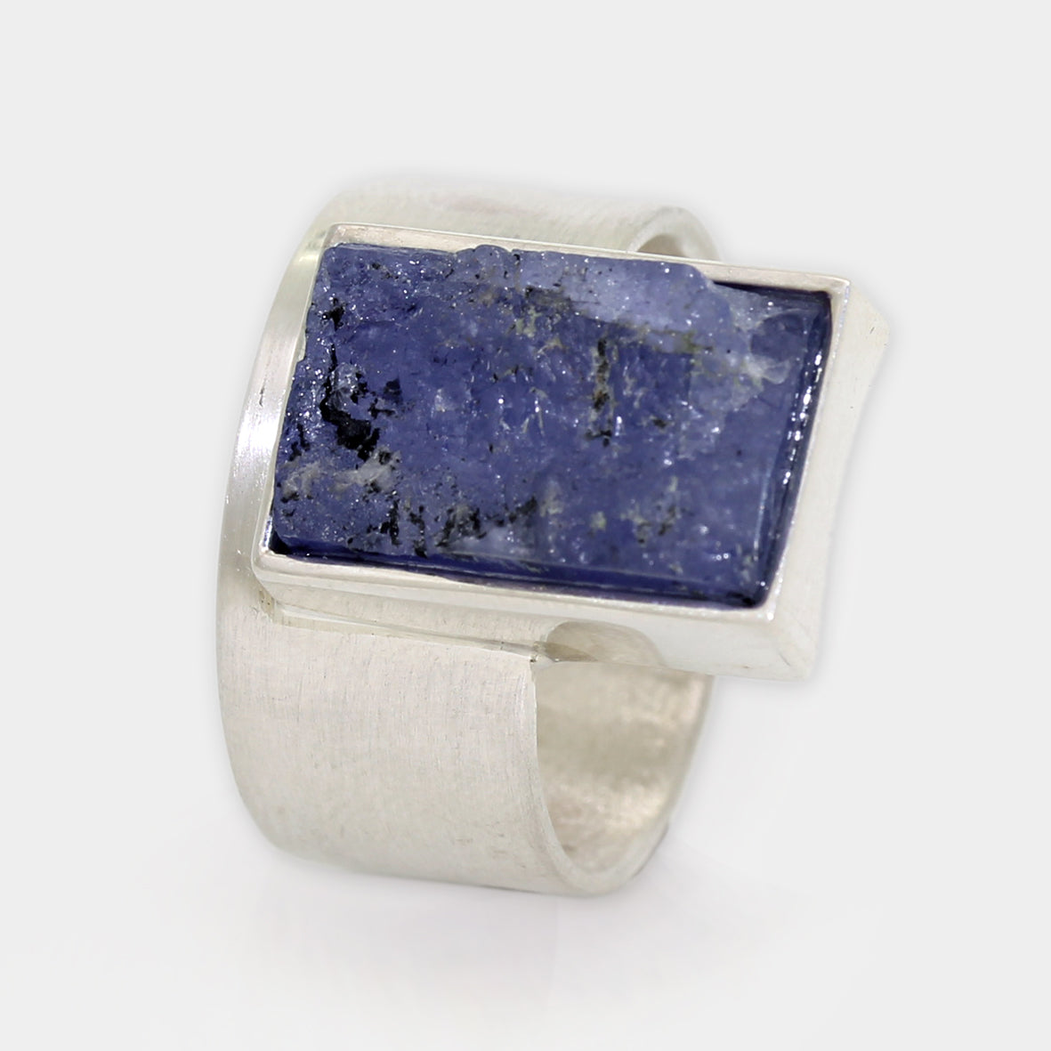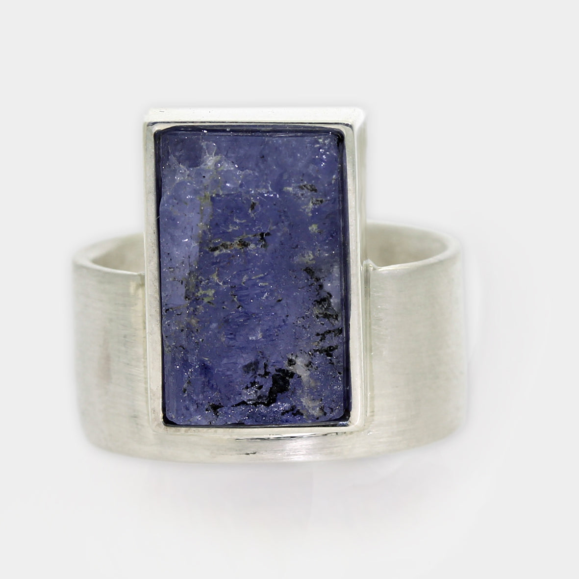 Silberring mit rechteckigem Tansanit Rohstein (Kopie)