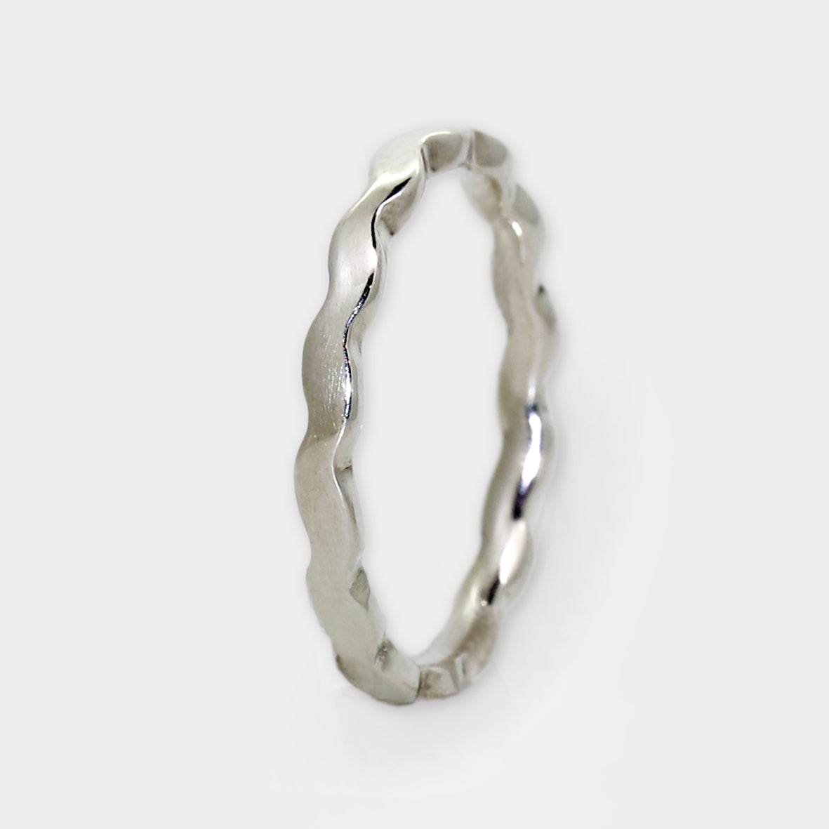 Der Wellenring zeichnet sich durch seine geschwungene, wellenartige Form aus, die an das Meer oder fließendes Wasser erinnert. Die geschwungene Form fängt das Licht auf einzigartige Weise ein und erzeugt ein faszinierendes Spiel aus Glanz und Schatten, das den Ring zu einem zeitlosen Schmuckstück macht.